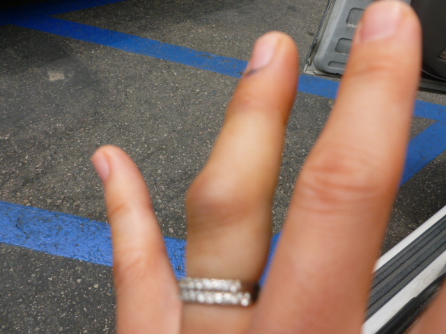 There really wasn’t a choice: I had to cut loose the pair of wedding rings. They had choked off the blood supply and were bottlenecking the finger that only kept ballooning. Peter had realized something had to be done about the rings or the finger – he was supportive, though bummed. I was SAD when they were cut apart in Urgent Care!